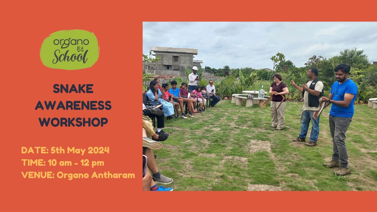 Organo Et School, in collaboration with the Friends of Snakes Society, will host a workshop to raise awareness of snakes on Sunday, May 5, 2024. This initiative aimed to raise knowledge and acceptance of living in a bio diverse environment in harmony with other animals